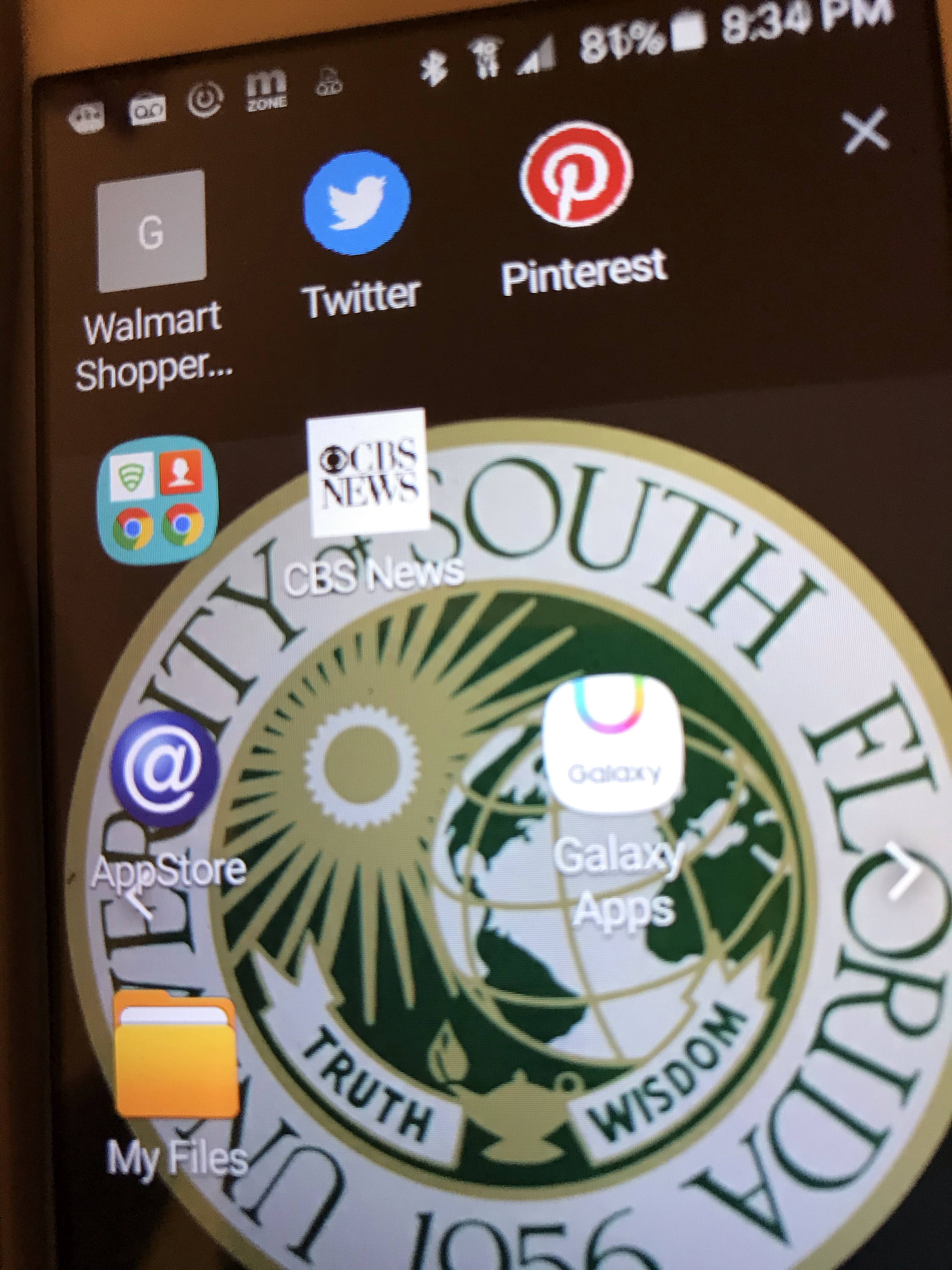 The photo is of the apps on my old Samsung. Note the gray square in the upper left. And that Pinterest app is suspicious since I had to uninstall that to install the Uber app to get to AdventHealth to get my new knee installed.