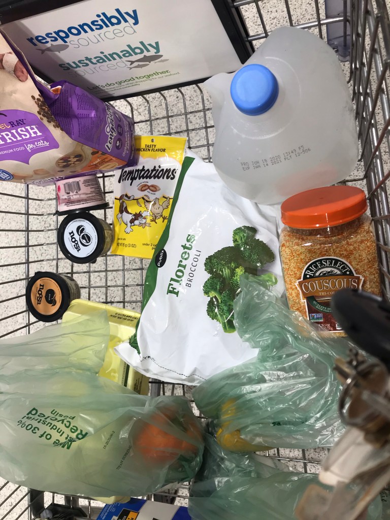 I ended up throwing red and yellow bell peppers into the cart. Tossed in a poblano and a red chili pepper. I already had mushrooms and a red onion at home. I wanted broccoli. I hardly ever get the fresh stuff because it goes bad. My roommate isn’t exactly a broccoli kind of girl. Me? I love food. The only thing coming between me and my appetite is death. Hmm, this is what I eat: I don’t like celery. That stuff is disgusting unless it’s chopped into microscopic bits and added to, say, chicken salad. Oh, and scrapple. Pennsylvania and Jersey readers know what I’m talking about. It’s more disgusting than head cheese. My parents, with their philosophy of, just try it. If you don’t like it, you don’t have to eat it got me to try it and, surprisingly, I lived to graduate high school and college, get married and divorced, avoid motherhood and end up here writing this on my phone while parked on the sofa. Shocking, I know. If ever you are presented with the opportunity to sample scapple, run screaming. And, ok, I’m not fond of tuna salad but, I love tuna steaks. Probably because they are more expensive. Sorry, I veered off course: I rolled over to frozen foods, where I discovered that customers ahead of me emptied the shelves of ninety percent of the frozen veggies. Perhaps they are at home making veggie smoothies because they saw an infomercial on preparing a new COVID-19 cure. I found the last bag of frozen broccoli florets-Publix brand. It was all the way in the back on a bottom shelf.