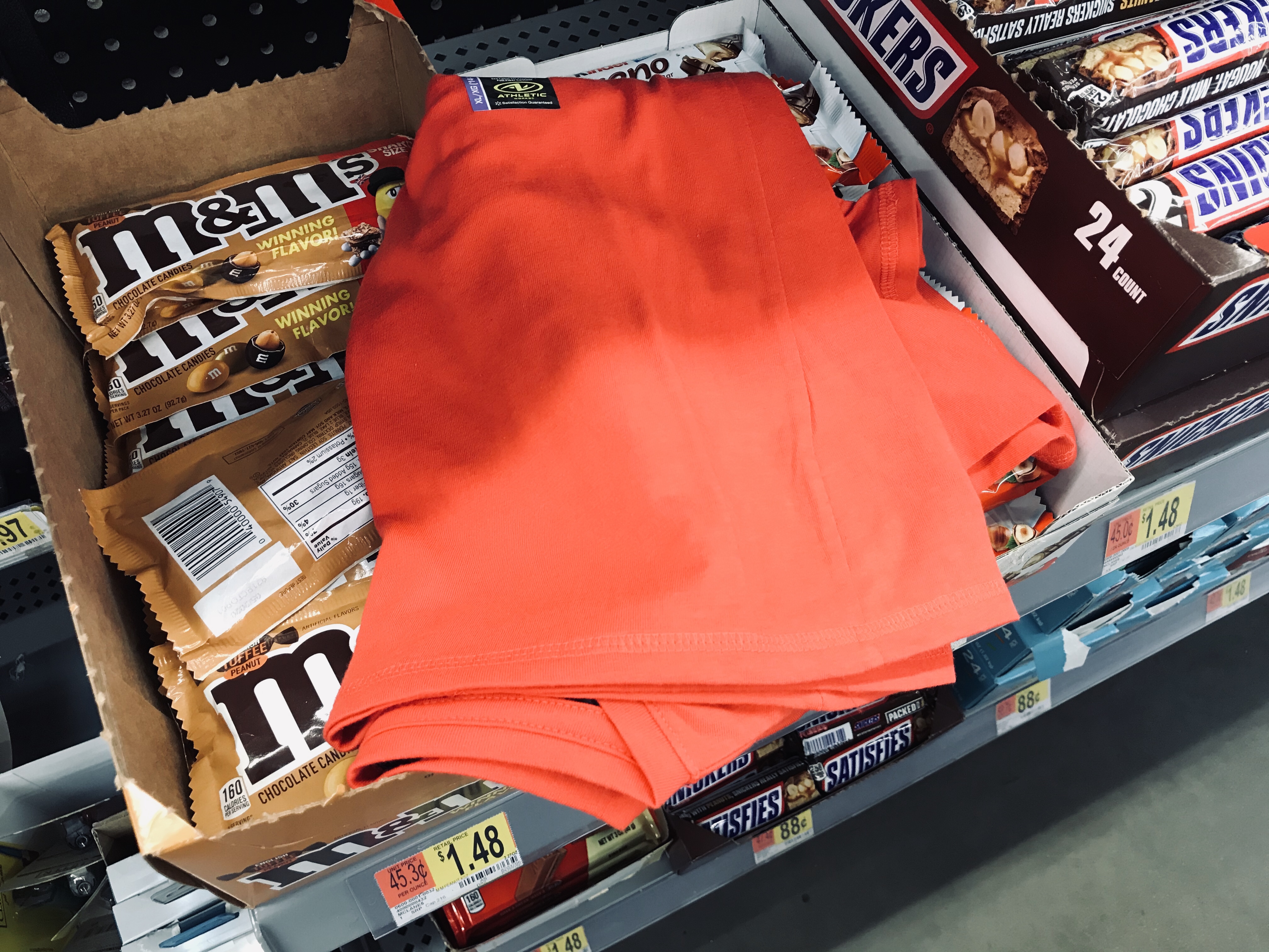 Jack fruit. What the hell? How do you eat this? Where do you start cutting? What parts are edible? Where the hell is this from? I guess I have a googling assignment. These specimens were in Publix #62 in Winter Springs Town Center, Winter Springs, FloridaI’m spoiled after living a city that has more breweries than any city in the world (allegedly) because of the microbrewery craze. Yes, that all started in Portland, Oregon and if you really love beer, PDX, Oregon is your Mecca. So, even if these signs read, “Free,” I would still roll on by. This is also in Publix #62.This is hilarious given that when maskless customers enter the store our Health Ambassadors can only tell those individuals masks are required even though in our county, Seminole, there is an ordinance. We don’t restrict their entrance. Honestly, though, I have seen very few maskless customers in my Walmart. I am grateful for that.Really? This, “shopper,” left this discounted beach towel just hanging across the hooks. If I would have done this when I was a kid, my mom would have slapped my wrist and snarled, “You put that back how you found it, where it belongs.” This is in my Walmart in Oviedo where they, indeed, are on sale for three bucks. It is a good deal. I rang up bunches this past weekend.More merchandise not returned to its proper place. Yeah, I know K-Cup coffee makers are popular. To this former barista and coffee lover, they are blasphemy. Plus, unless the ground coffee is dosed out into those reusable K-Cup filters, they are landfill hell.This is sadly absurd; it’s disgusting. It used to be a joke in my family that I was born about an hour before Prince Andrew. My mom told me that just before she was wheeled into the delivery room for her C-Section, the nurses teased her about giving birth the same time as Queen Elizabeth. My mom told me that she told herself that if the Queen of England could pop out a baby, so could she. Now, the Prince is turning out to be a jerk. Oh well, I’m Aquarius; he’s Pisces with Sign of the Asshole on the ascendant. Now, he’s just an embarrassment and possible criminal.An absurd amount of discontinued wine to not be able to afford to buy. Sniff. Publix #62.Just look at this UPC label. Just look, what a waste of paper and ink. Literally, NONE of them scan, not even with the hand scanner. Thanks to a co-worker with super human eyesight who was able to read the number I, at first, wrote it down. Now, I have it memorized. My inability to control my shopping at Publix. I went there for a wrap from the deli. Publix #62.It’s absurd that here we are on the last day of August 2020 and we are still dealing with this hideous COVID-19 virus. It’s also absurd that people need to be reminded to wear a mask with so much evidence that this is a real illness and that masks help curb its spread.Directional floor stickers in place so long they are coming loose and getting trimmed. I guess they cannot be replaced fast enough. Oviedo Walmart #5894.Yes, really, masks are a fashion statement. I bought the package of tie dyed ones. My Walmart #5894.I was in a quandary. Tie dye or coffee themed masks? Oh Lordy.Work silliness. One of my unknown co-workers has an usual name. This was in the employee fridge.Shirt I bought to wear the very next day because I needed to launder all my work shirts.Ok, it was a very cute movie-the first one- Sven was my favorite character. But, will, “Frozen,” EVER go away? Disney is milking this trend for all it’s worth.We switched from the crappy, thin, gray bags to the sturdier, thicker ivory-colored bags that can hold 20 pounds but, some customers still want their boxes of cereal double bagged. That probably contributed to the bag shortage we experienced this weekend. Allegedly, all the nearby Walmarts were having the same issue. I think it’s absurd that people don’t use reusable cloth bags. I’ve had a few of mine since 1989.Our wonderful neighbor, Debbie, had to move out two months ago. She was replaced by the owner of this behemoth. He’s only part time resident-the baby daddy??? We like their pet pit bulls better than their human keepers. It’s annoying that this guy, who is not a full time resident, feels it’s ok to hog up one and a half spaces from those of us who live here full time.This looks like my bank account every other Thursday just before midnight. That’s just absurd.