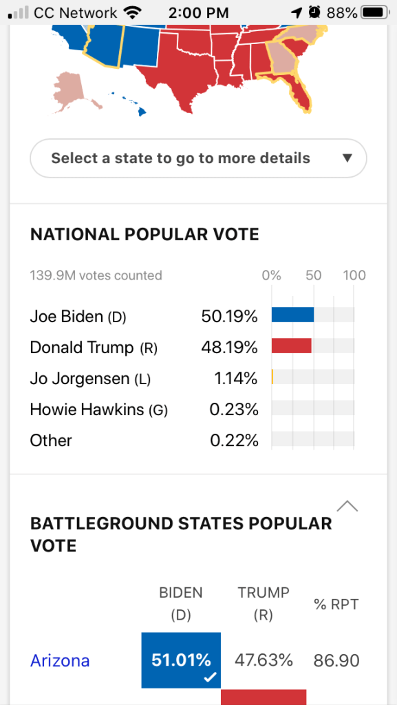 Upon waking, I did learn that all is not lost, that Biden can still win. He is ahead in the Electoral College, as of this sentence creation.
