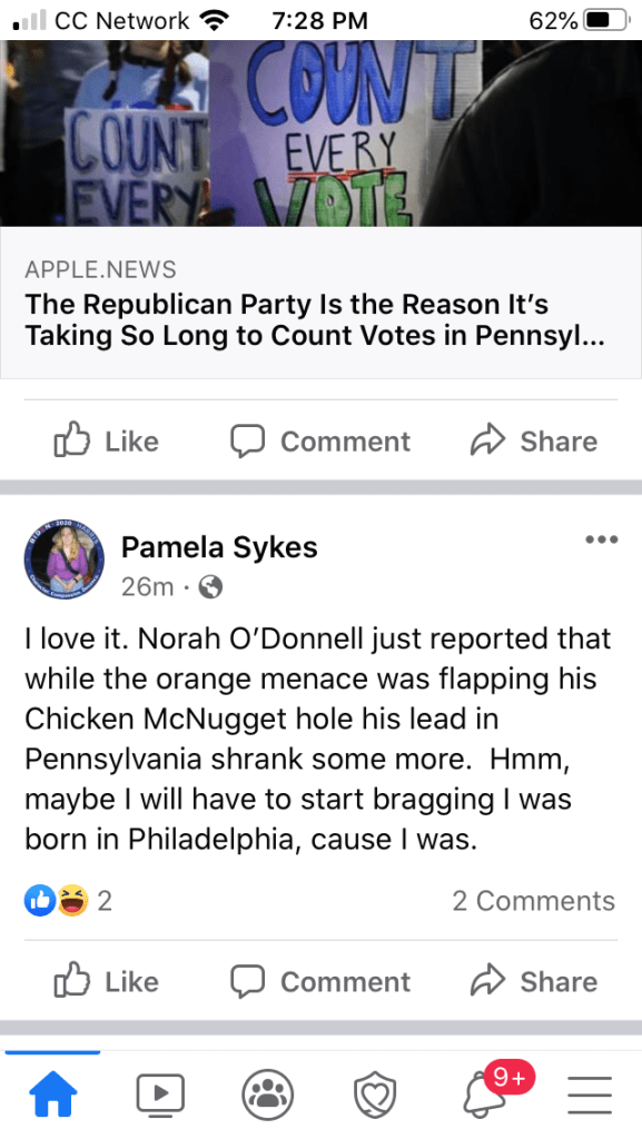 Here’s a couple of my latest Facebook posts. They kind of introduce my state of mind concerning our election drama.