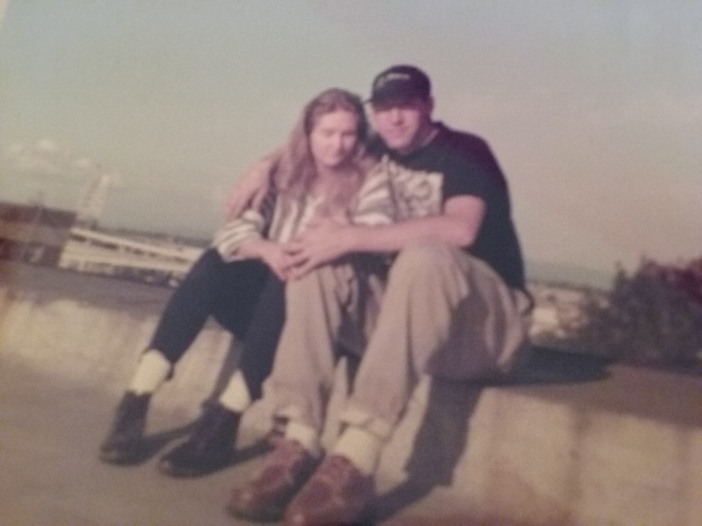 This is me in happily married days. This was taken in 1993. We were on the roof of our apartment building that was named, The Trevor Arms. It was next door to the wooden apartment building where Gus Van Sant filmed, “My Own Private Idaho.”
