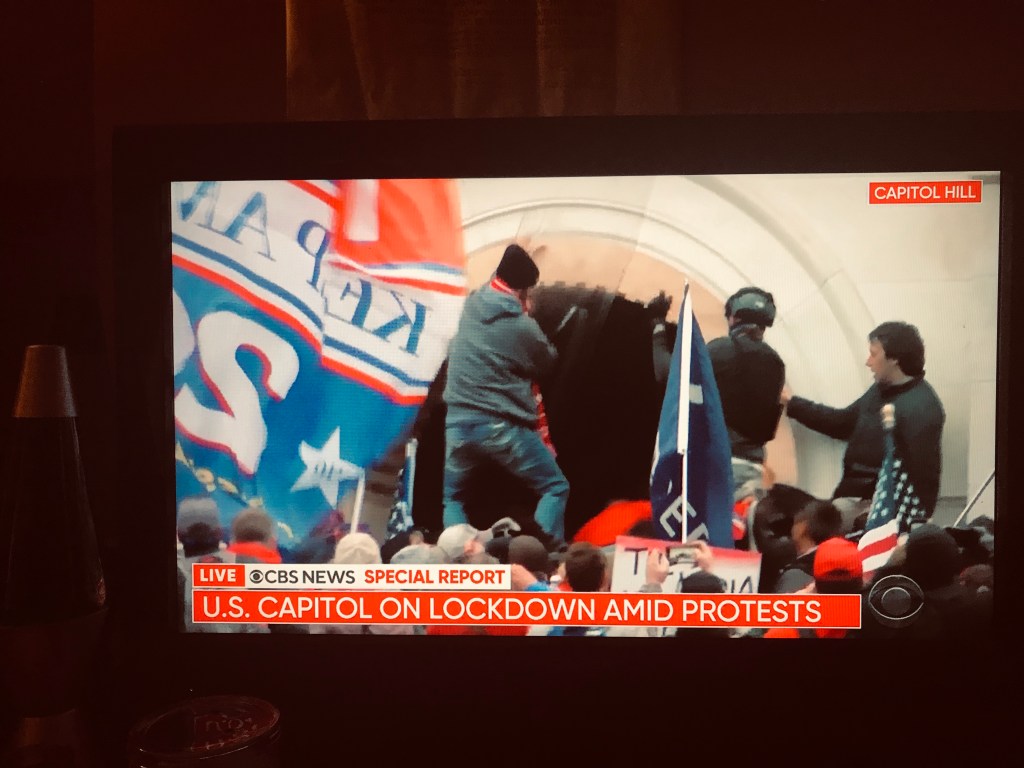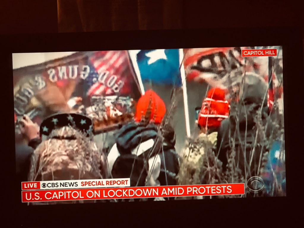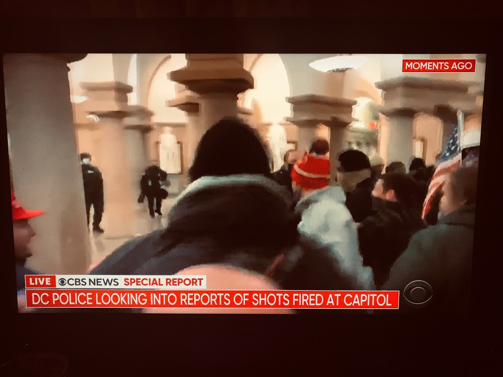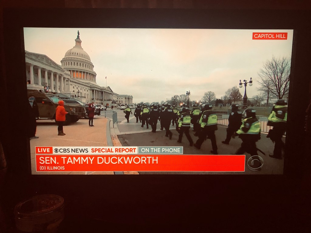 DC cops reaching the Capitol while CBS’s Norah O’Donnell interviews SenatorTammy Duckworth, wounded member of the military, who lost both her legs in war. I have to double check whether it’s Iraq or Afghanistan.
