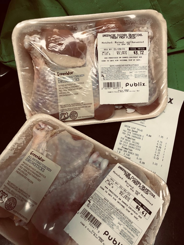 These were the wings I’ve been craving all day. I went to my Publix and, sadly, their collection of wings fell far short of my desires (like some men I’ve dated). I decided to get drumsticks and pretend they are wings.