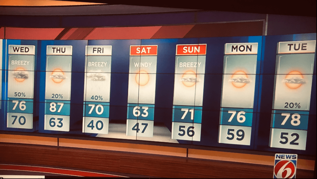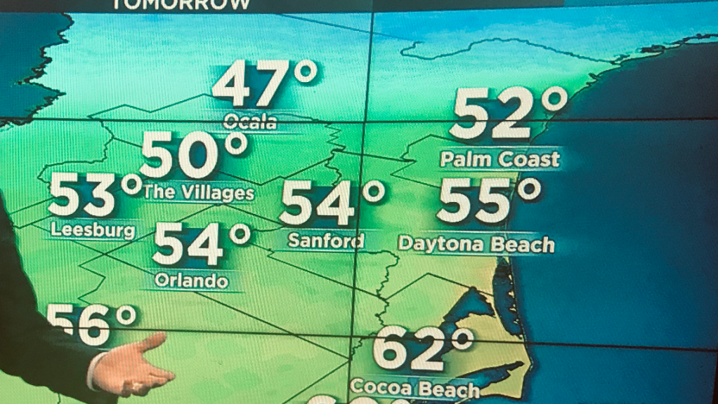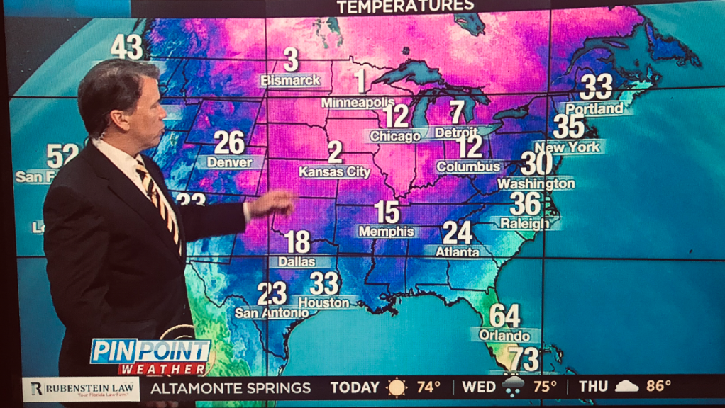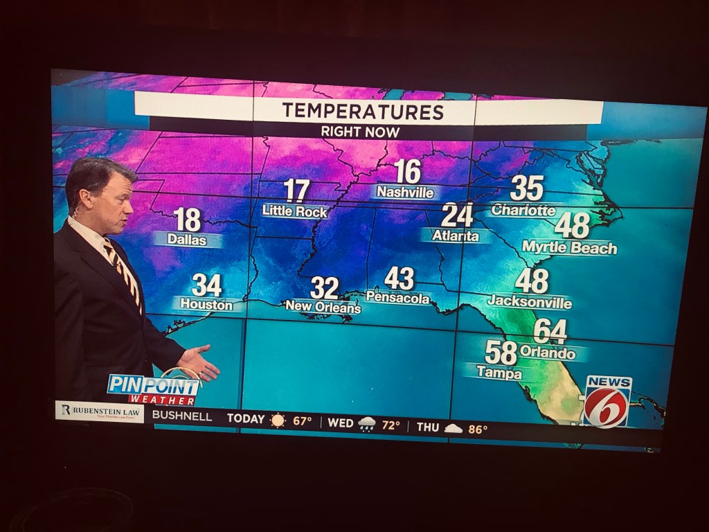 All photos are from tonight’s 11 pm weather segment on WKMG Channel 6 Orlando, Florida. That’s Chief Meteorologist, Tom Sorrells.