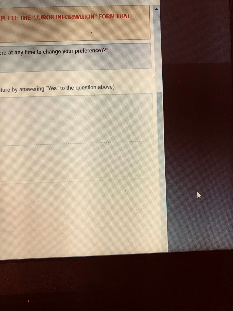 I got my laptop out and turned it on and went to the website. I entered my juror ID and phone numbers in the correct boxes and even filled in the name of my service provider. I thought it was odd they wanted that information but, oh well. Then I tried to scroll down to the submit button. It didn’t scroll down far enough. It was a complete dead end. I even asked Rose to fiddle with the tool bar on the bottom cause it was her computer until she got a newer one. Moving the tool/task bar out of way did not do anything. While she fiidled with the laptop I tried on my phone again. I got the same results.