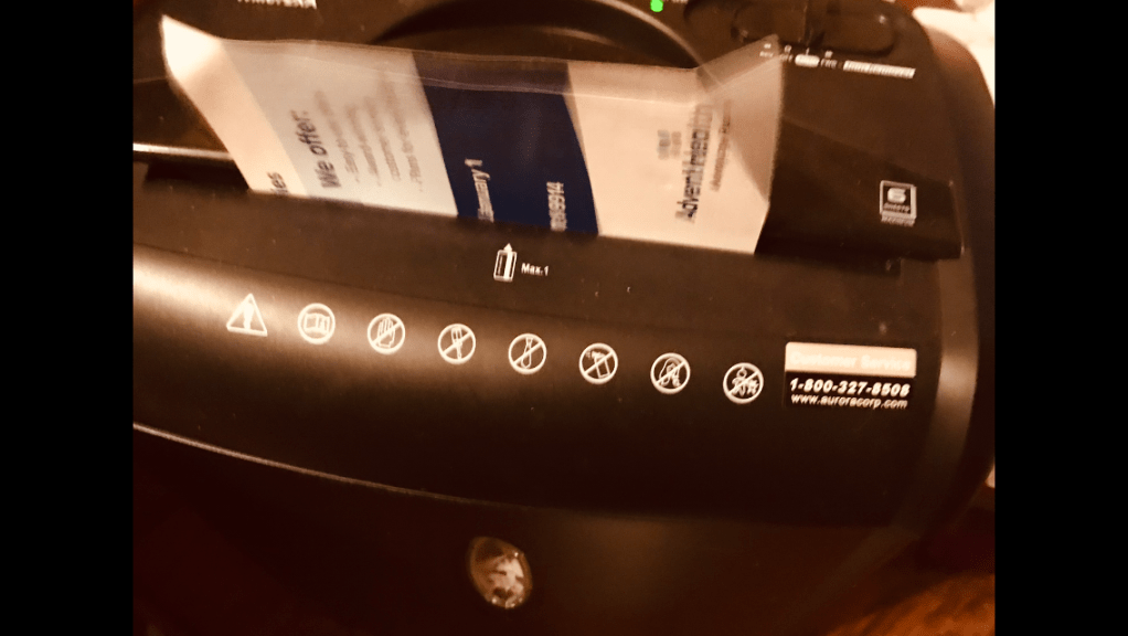 I’m taking a break and having a shredding party. Some of this paperwork is really stale. It’s so freeing to reduce this burden and, that’s exactly what it is.