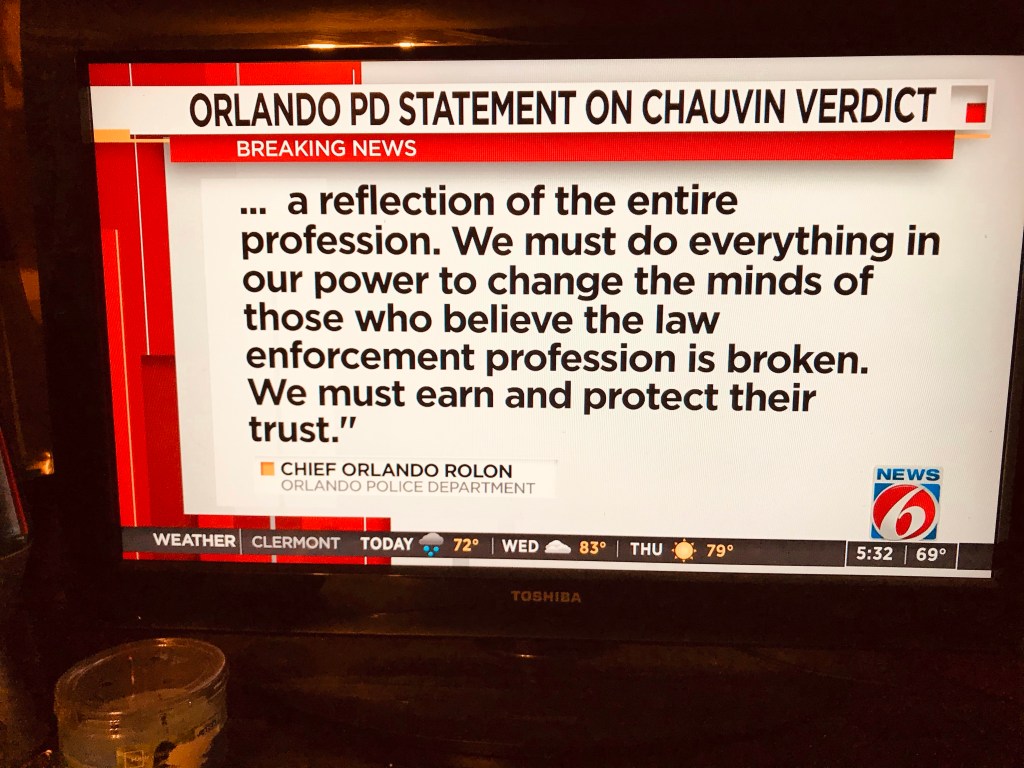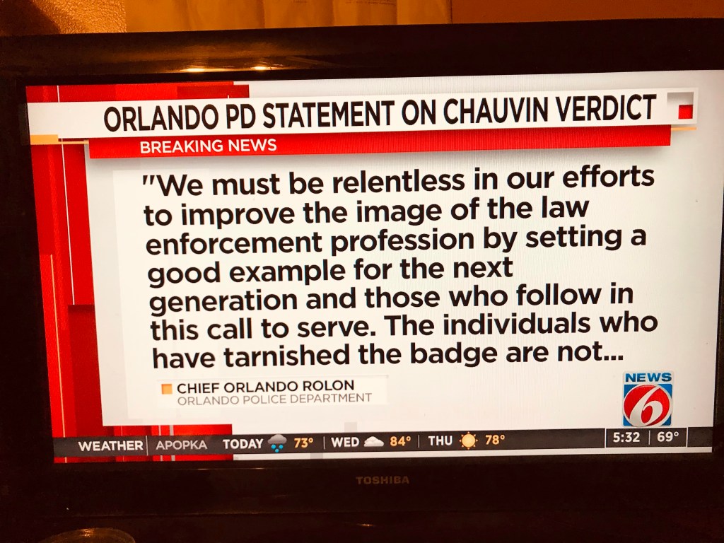 An Orlando local, John Henry, from the Paramore neighborhood, which is predominantly African-American, is being interviewed on WKMG about the verdict. He said he was married to a cop for 19 years. “You’ve got to stop treating people different because of their color.”