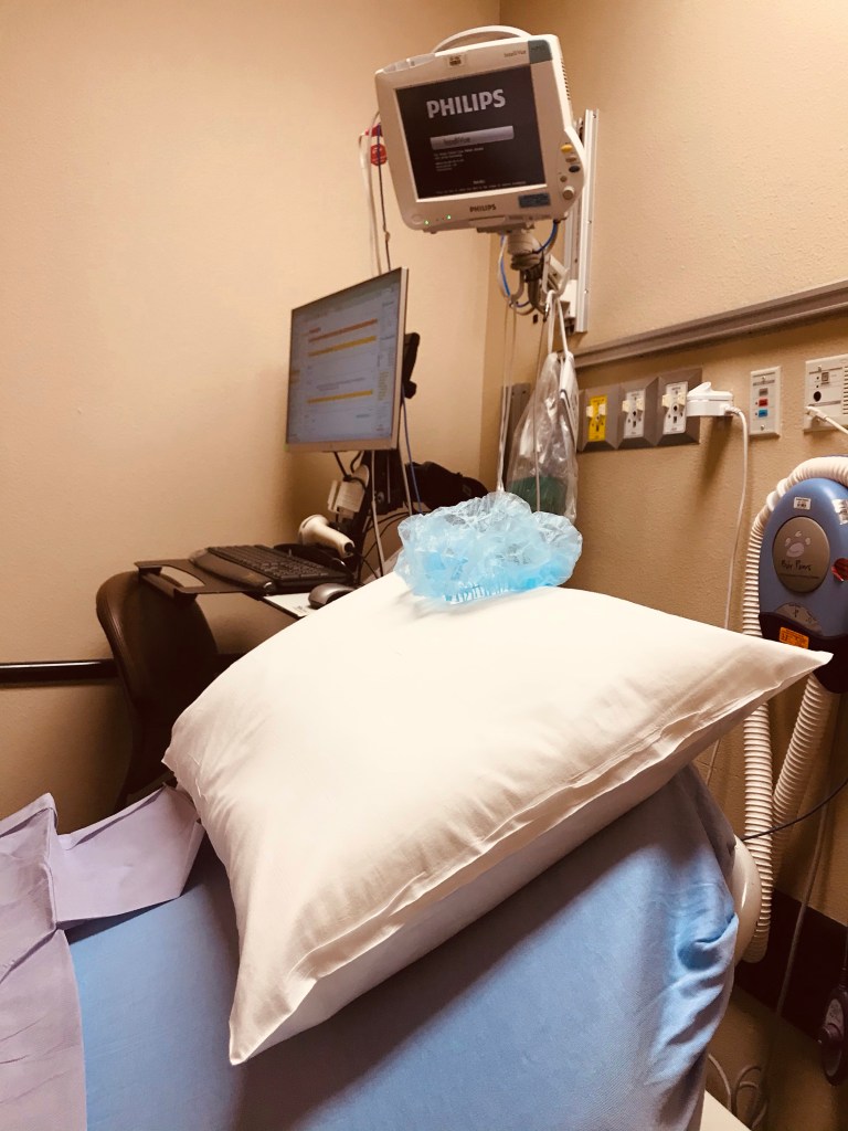 Having surgery meant I didn’t need to eat or drink. I just dressed in baggy clothes, sans bra. I let my girls roam free and put on shoes. I packed up my CPAP machine and a small bottle of purified water. When I had my knee surgery at AdventHealth, they supplied the water. I even got to keep the remainder of the bottle. I ended up not even using the CPAP machine. The actual procedure was only going to take about twenty minutes. I was told to bring it just in case. They did give me a general anesthesia. That doctor had about zero personality. I guess he picked the right specialty; there isn’t too much interaction you can share with a sleeping person.