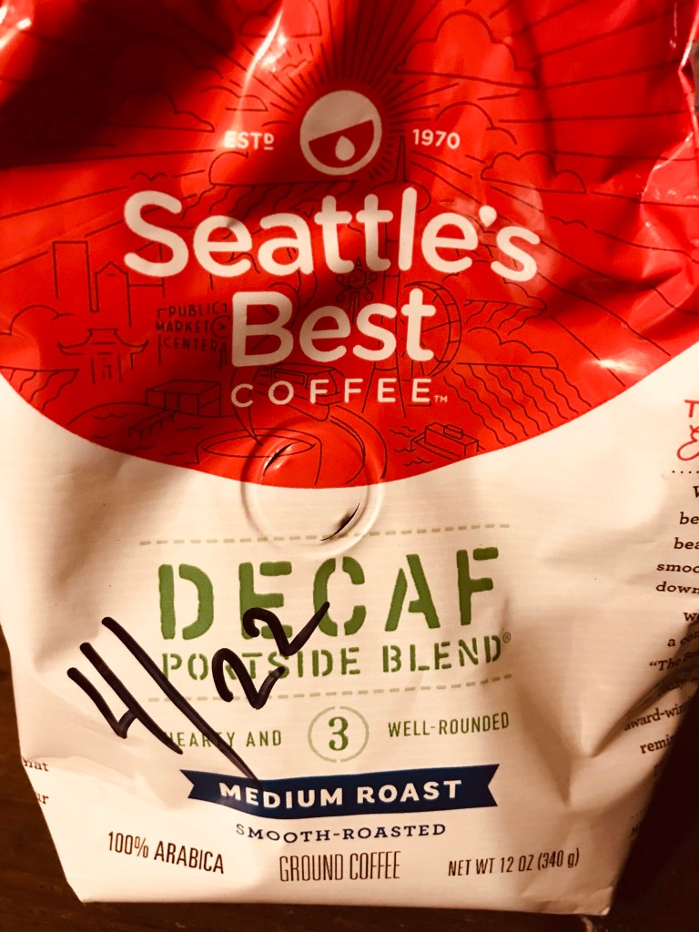 I’m done eating. I’m pretty full. I’m having a half cup of decaf and letting my food settle.