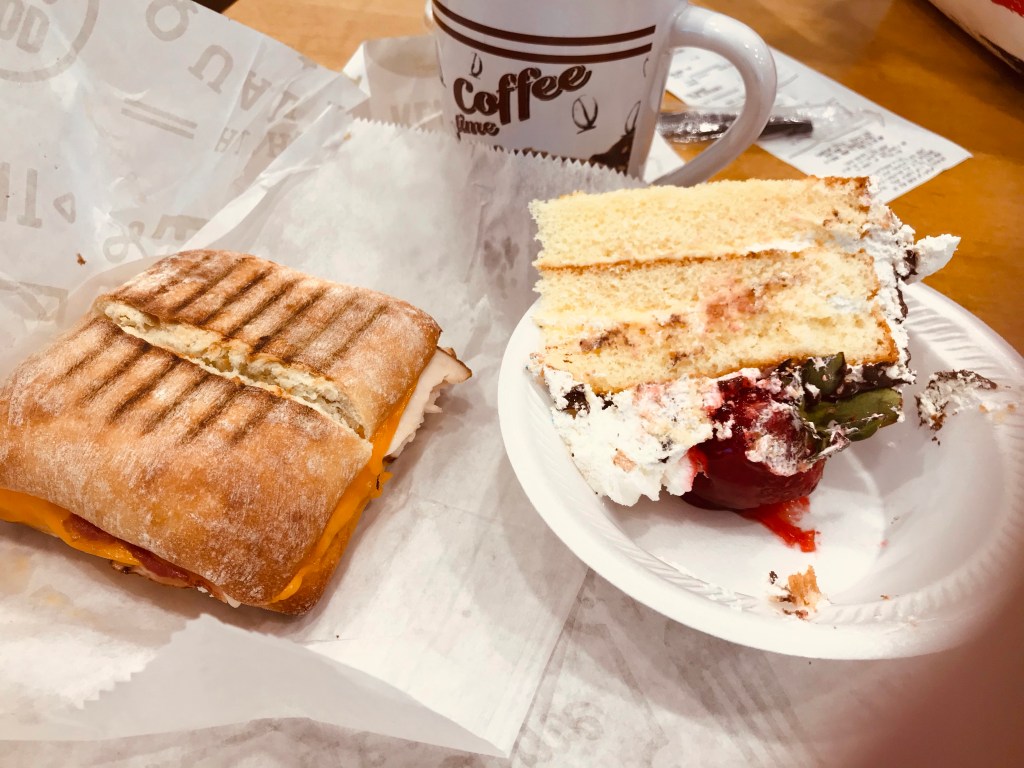 I got the Turkey, bacon, cheddar on ciabatta again. It’s really good. And, our deli/bakery manager is having his birthday. So, there’s cake.