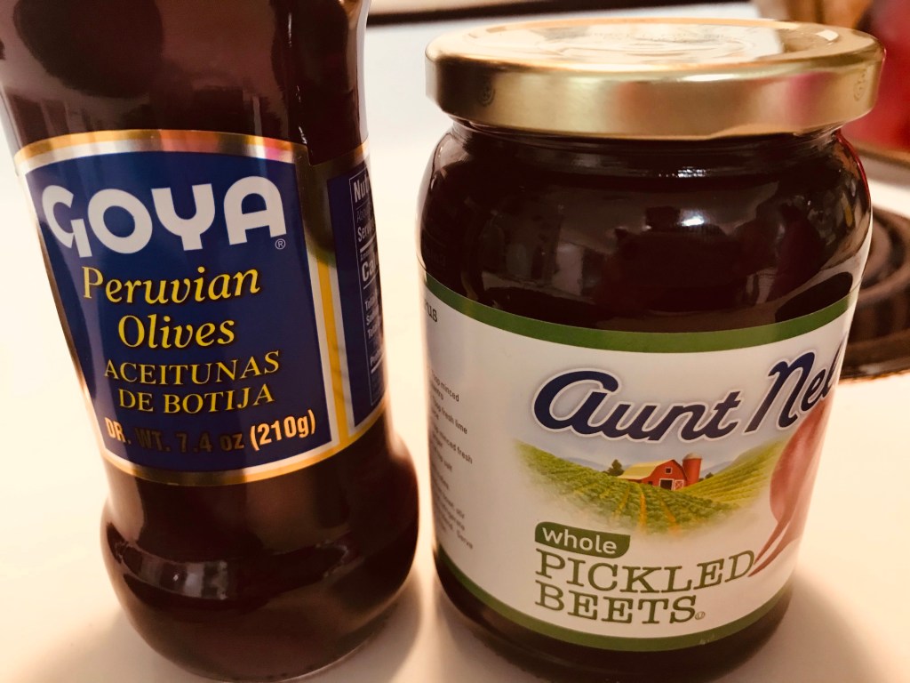 I rolled down to my beet choices and picked out a jar of whole pickled Aunt Nellie’s beets.