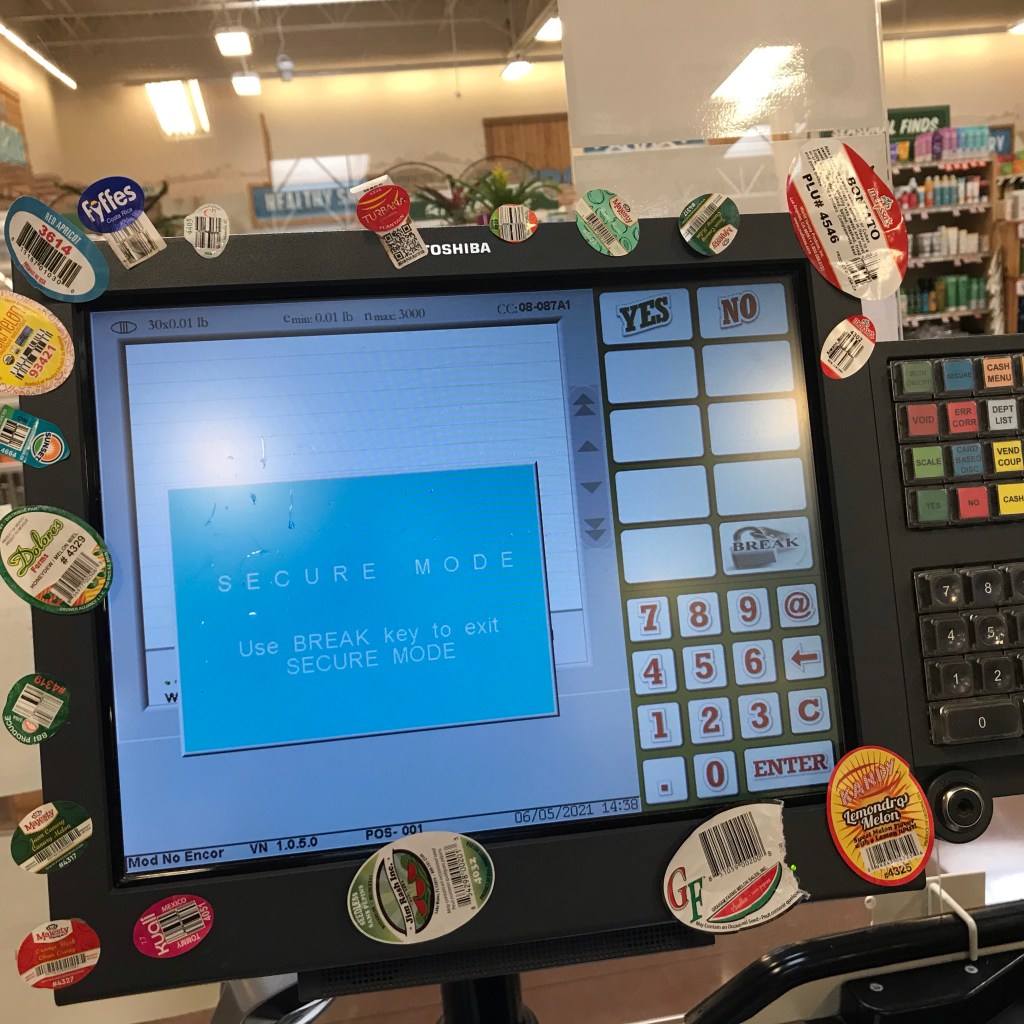 I headed toward Lane (registers are called, “lanes,” at Sprouts) one. I plunked down my personal items and did my produce walk. Produce is the big seller at Sprouts. Each of us cashiers takes a stroll through that department to take note of new stuff, important sales and to steal stickers off the items that could be a pain in the ass to look up in the PLU code book. At least, I do that last part of the walk. They want us to scan produce. I’m complying with their wishes.