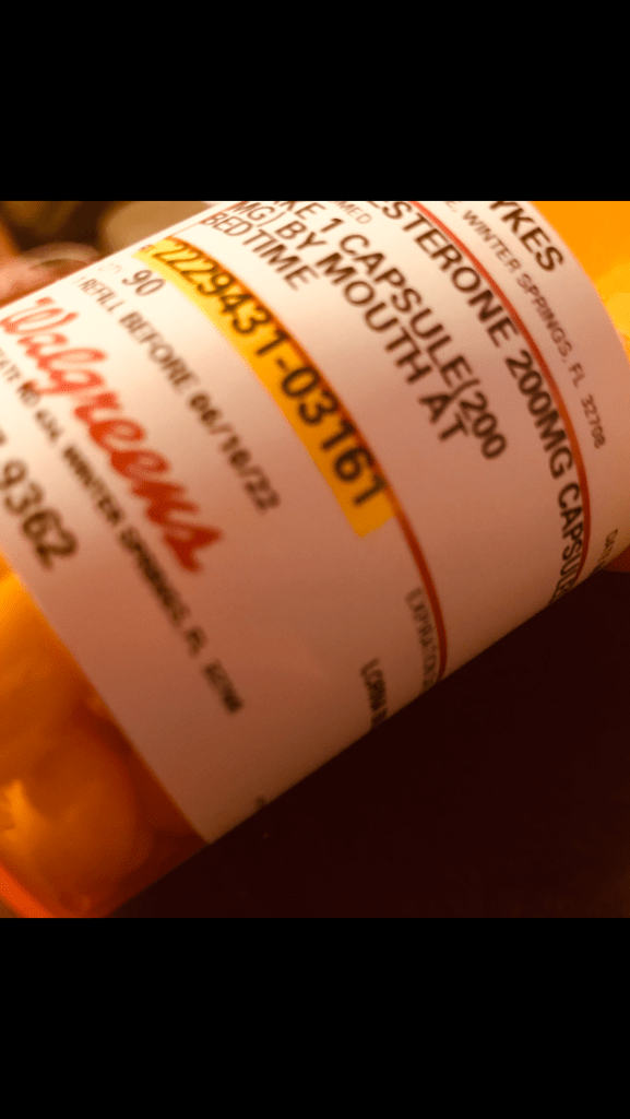 She confirmed with me that I’m applying the cream three times a week, on Monday, Wednesday and Friday, and that I’m still taking the progesterone. She told that she’s got me on the natural, rather than the synthetic, hormone. I didn’t even know there were two different kinds. And, I did my usual googling!
