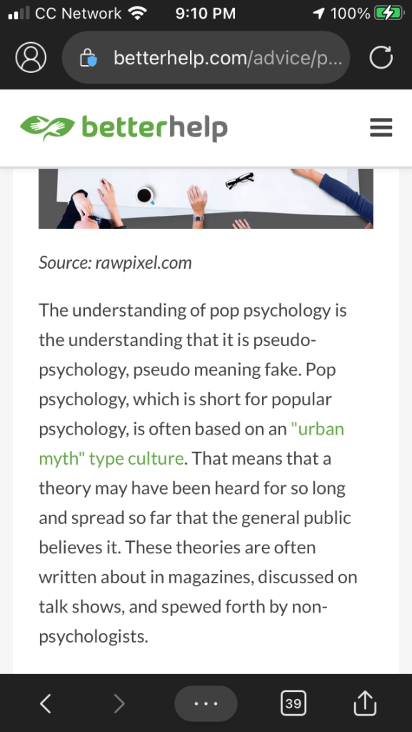 Some people think I am saying, “psychology,” is a load of horseshit. They fail to perceive the adjective, “pop.” Psychology is a legitimate social science that employs the scientific method and correlational studies.