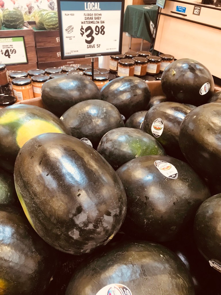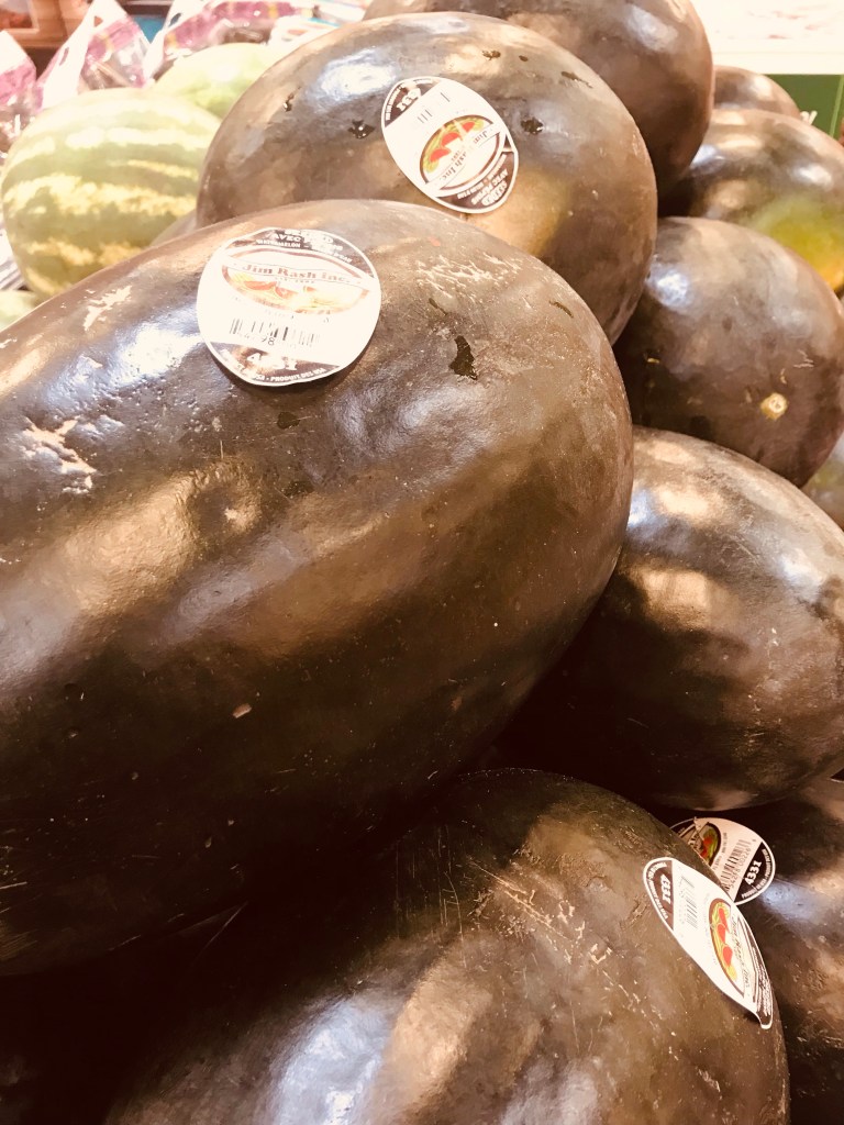 In case you have not heard of these melons before, I will post some photos. I just learned of them last week. They are so dark green they can look black. I’ve been told they are juicier and sweeter.