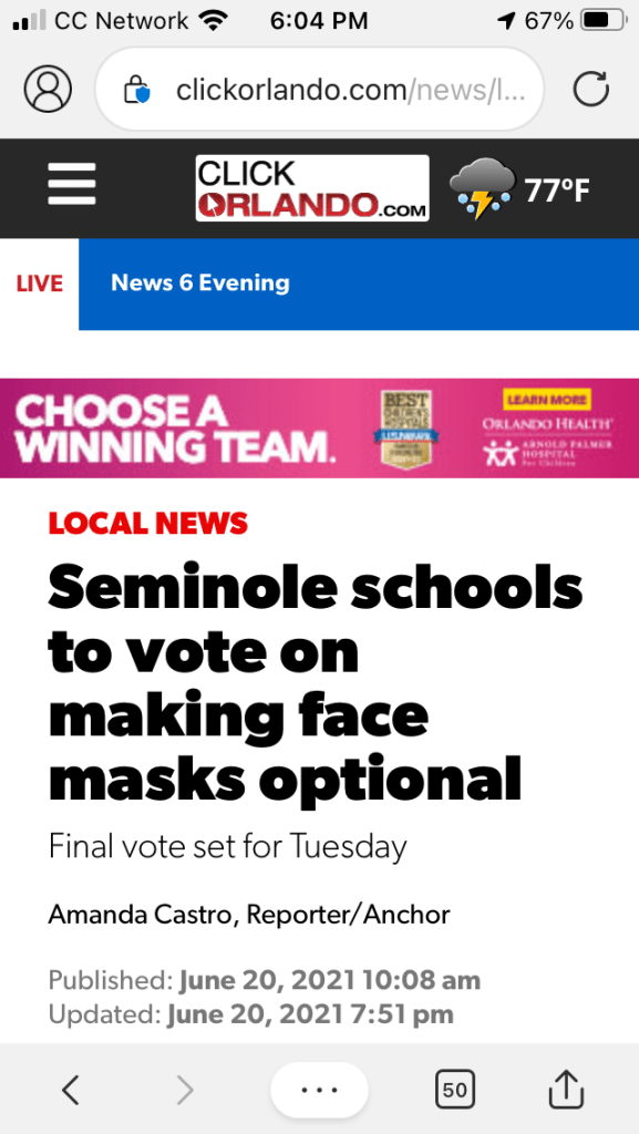 I live in Seminole County Florida. It’s the county that shares its Southern border with Orange County, which is home to Orlando.