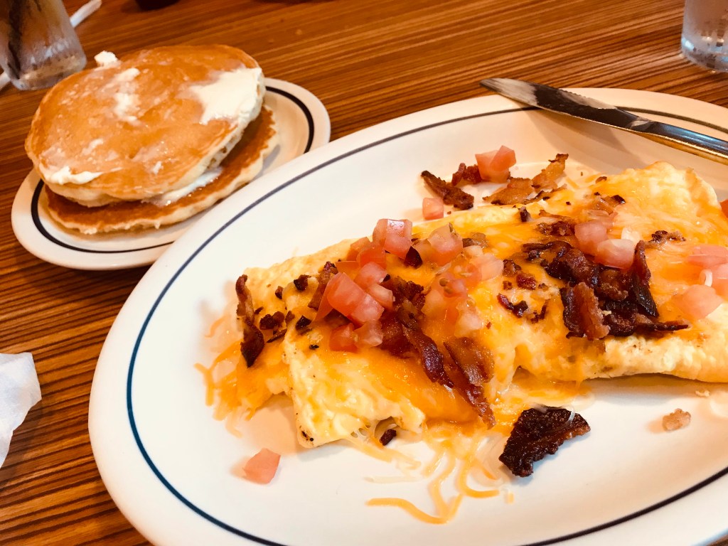 We’re at the Oviedo IHOP. I’m so desperate for pancakes I am buying. We just ordered. I’m starving. I’ve only eaten a few (times a couple) of chocolate squares. I know it added up to less than 180 calories. But, that’s all I’ve eaten.