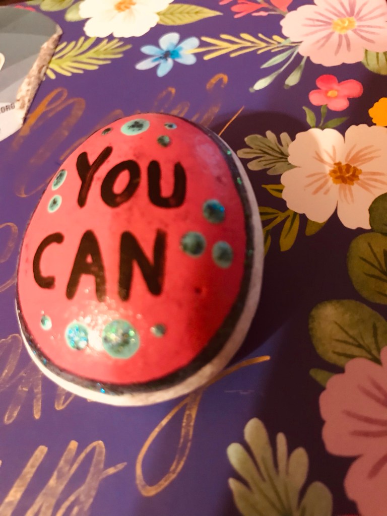 She lives in Flagler County, which is below St. Augustine (St.John’s County) and north of Ormond Beach (Volusia County). There’s a group of folks in Flagler who paint rocks with inspirational messages and then drop them in spots all over the county for people to find and keep, if they want to.