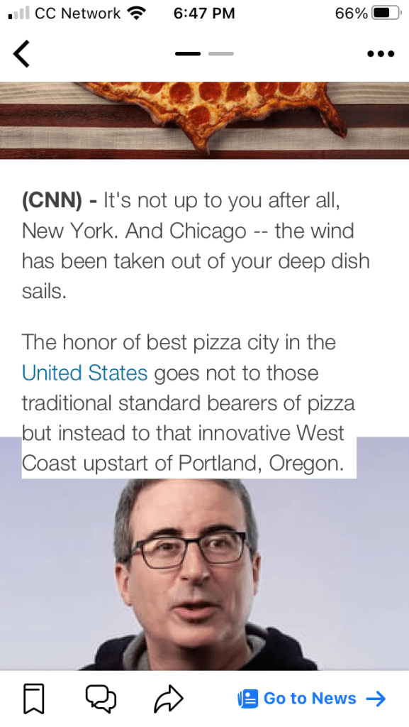 I guess one of today’s oddest surprises was an article on CNN about a couple of guys who wrote a three volume account of the state of pizza in America. They traveled the country and determined that Portland, Oregon is the best pizza city in the USA.