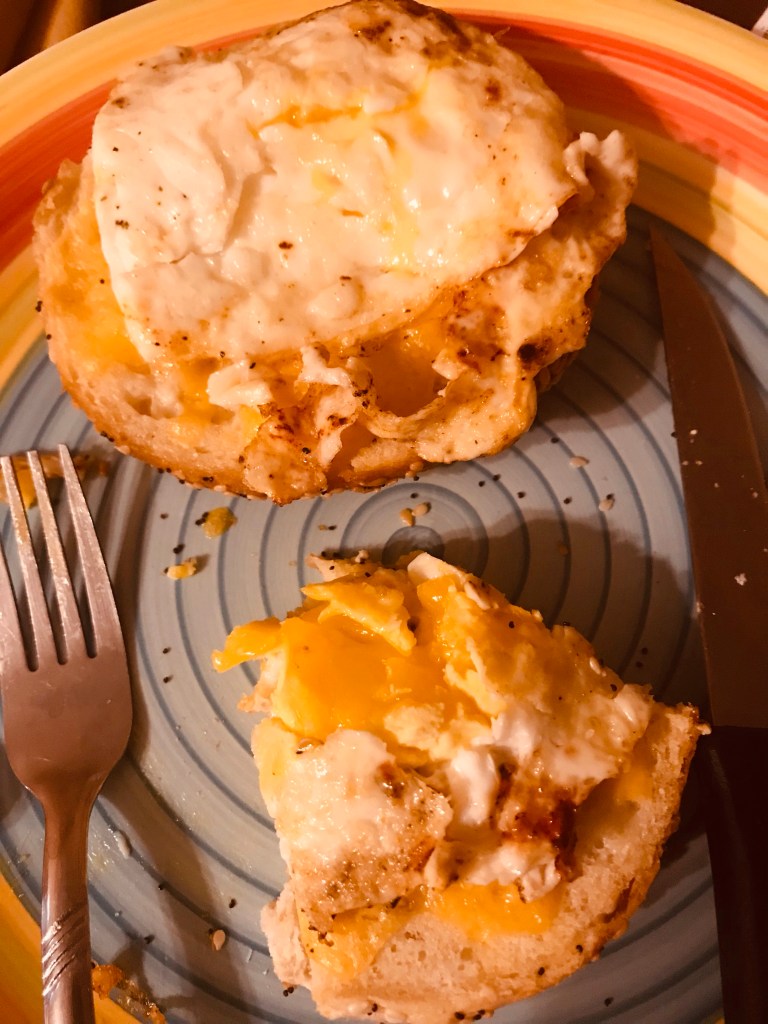 I’m having brunch. I’ve been up since around 11 am. I ate a berry-applesauce about forty minutes ago, as an appetizer. Then I made Rose and I bagels and fried eggs.