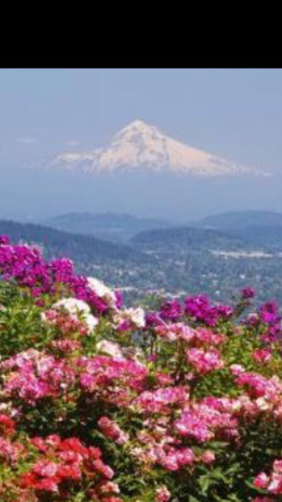 I wish I could be in Portland at the International Rose Test Gardens in Washington Park so I could take my own photos of the beautiful flowers there and gaze east toward Mt. Hood.