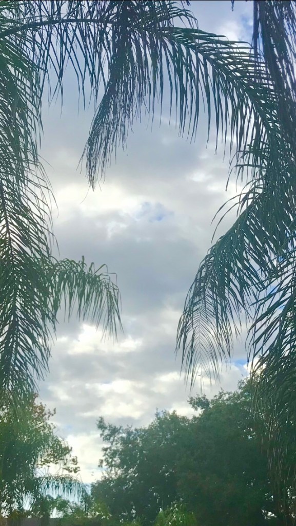 I’m still outside because I love listening to the wind and smelling the coming of rain. It smells earthy and wet simultaneously. I love the sound of wind moving through palm fronds.