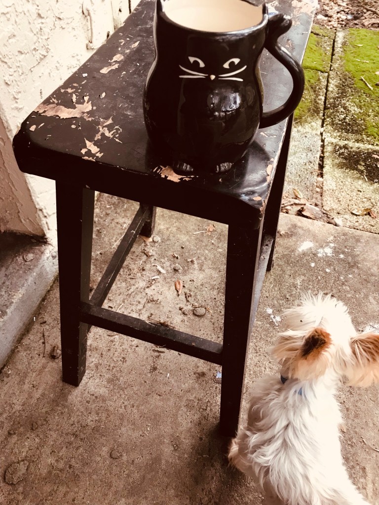 I’m in the front yard. Yesterday’s all day deluge kept me and Bo indoors. He was not having the rain. Between me and Rose, I think this is his third commune with the front yard.