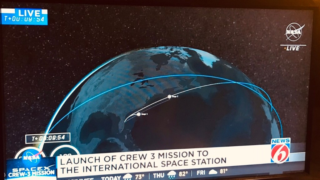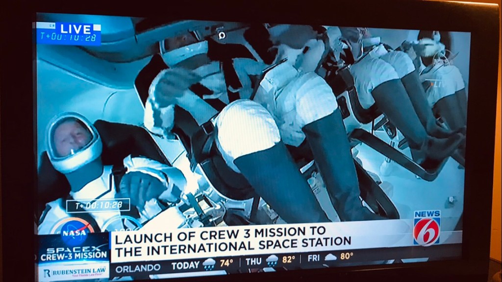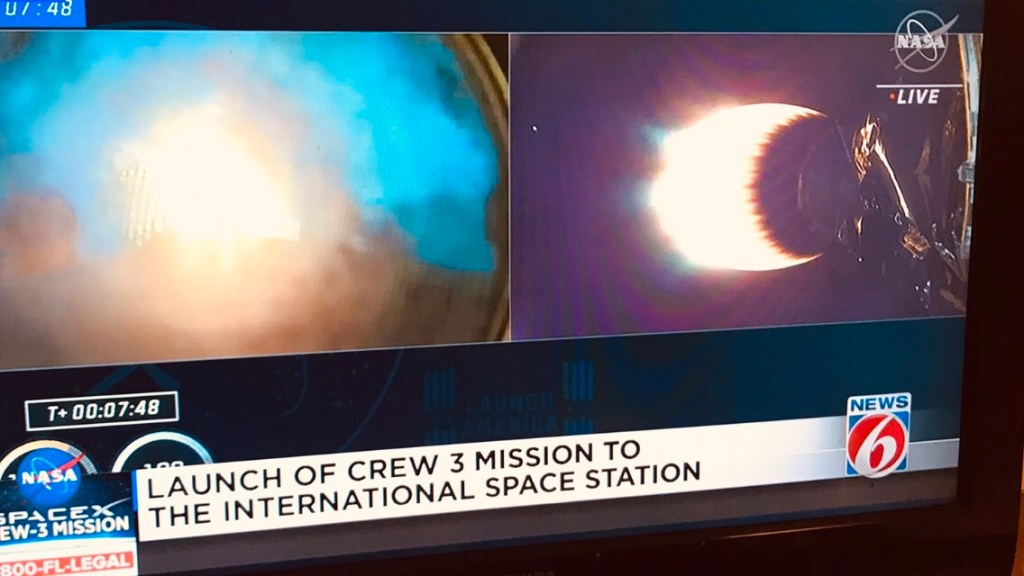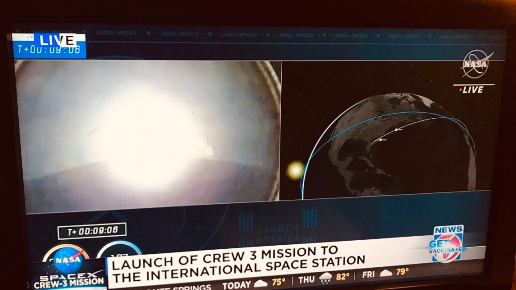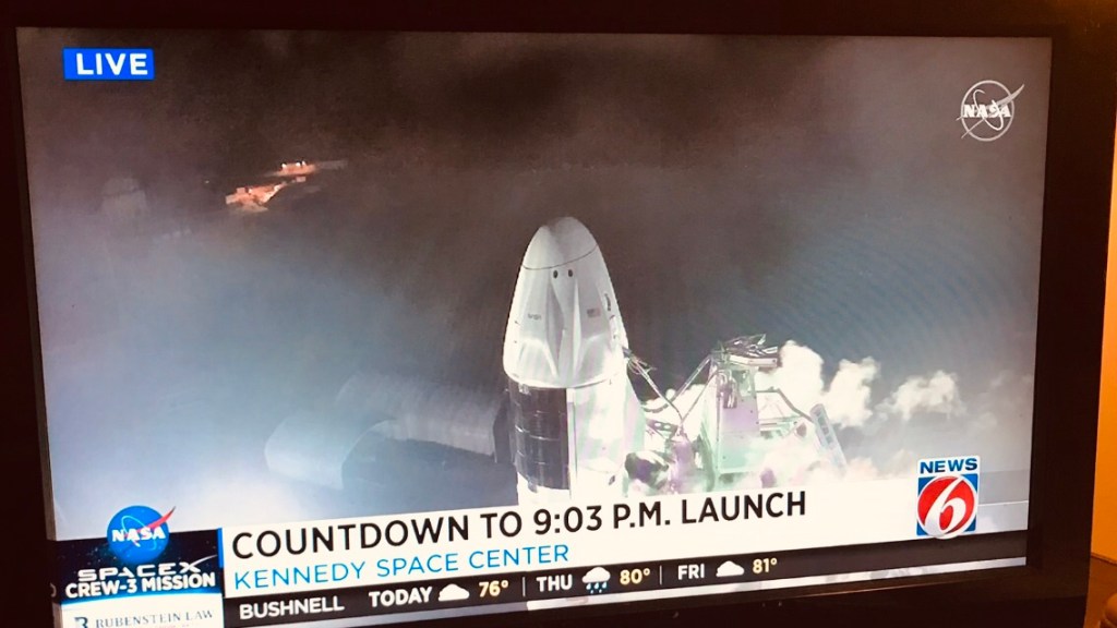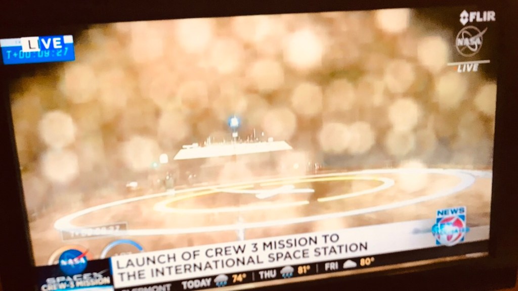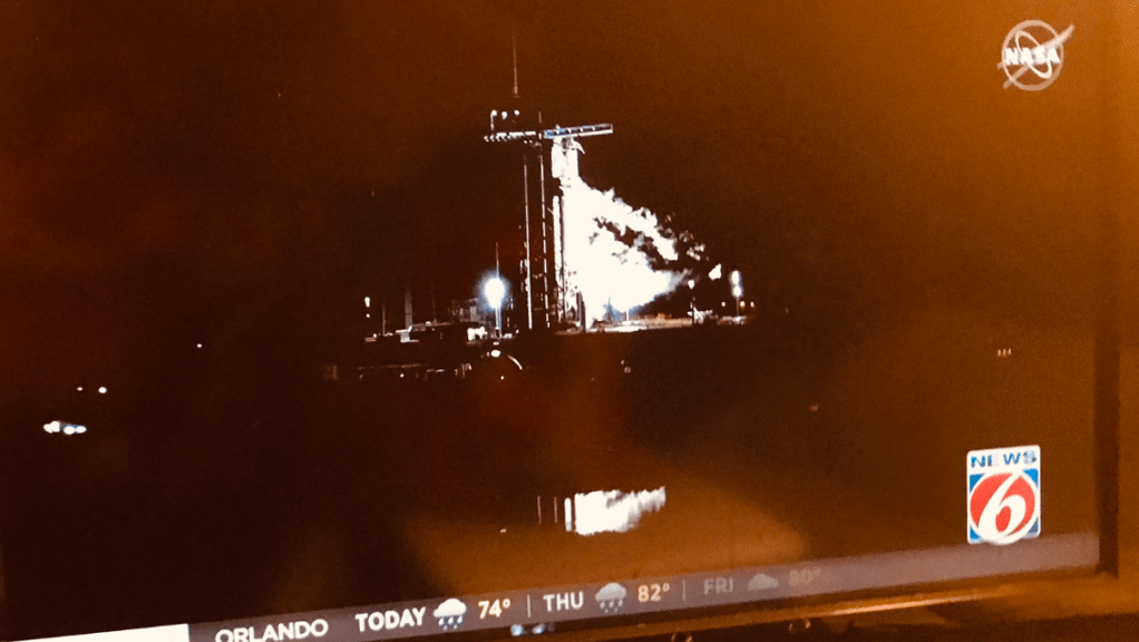 I certainly haven’t minded that, but the physics of rocket launching does not appreciate it. Even on the local evening news, Chief Meteorologist, Tom Sorrels, from WKMG, reported there was only a 70% chance of a launch happening. The Cape was getting a lot of light rain, but not much lightning. If there is any lightening happening, the launch gets scrapped.