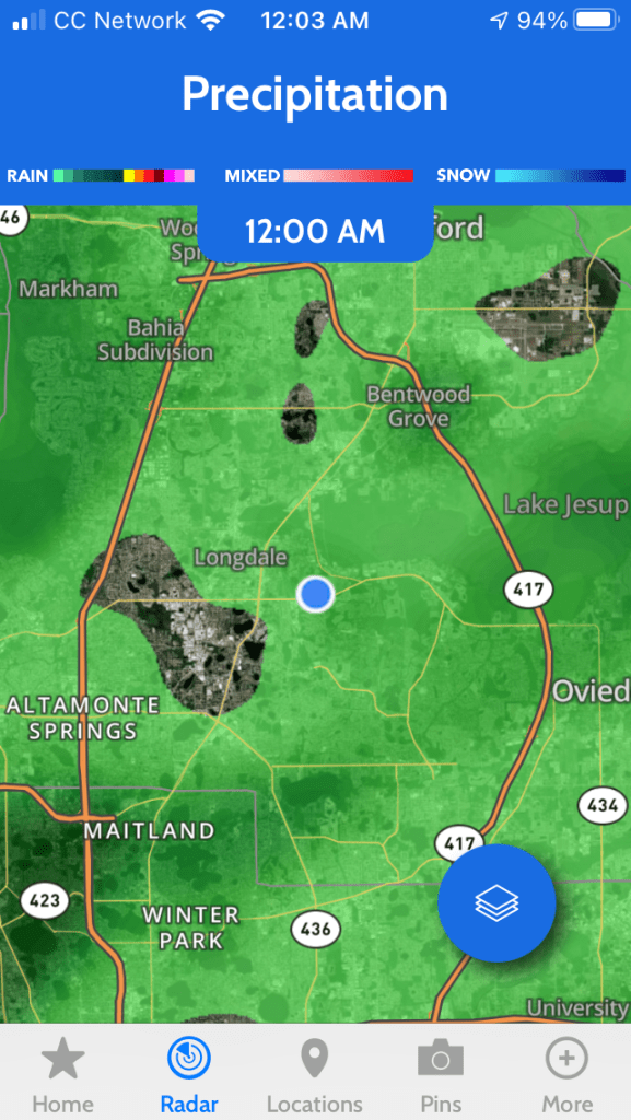 I just took this screenshot of our current radar. Also from the WKMG weather app.