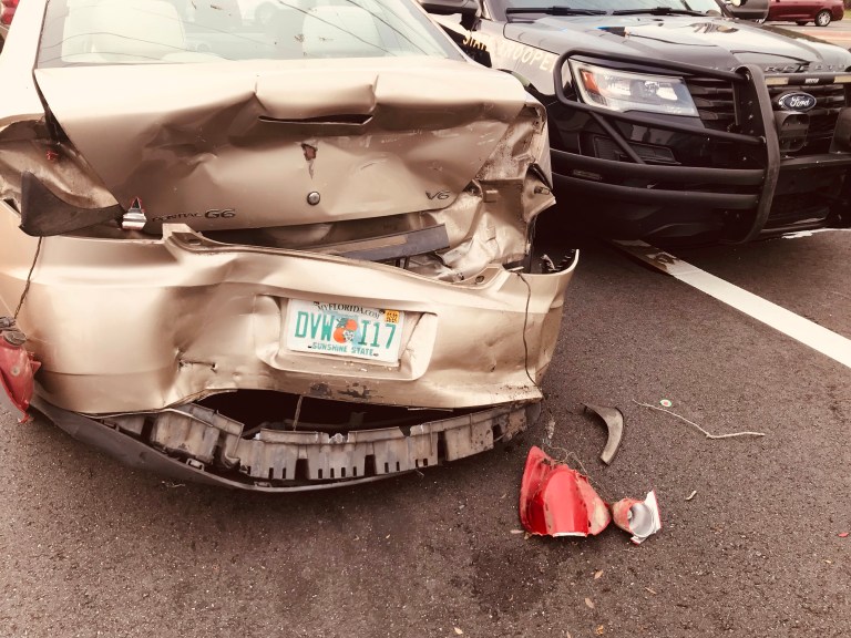 I took the two photos above. The bottom one is of my dead car at the scene of the accident on 8/5/2021. The top one is of my car at the tow yard, where it was taken after the wreck. I’d gone there to retrieve my belongings, including my auto tag, a couple of weeks after the wreck. I ended up surrendering the vehicle to the tow yard. I assume it was auctioned off.