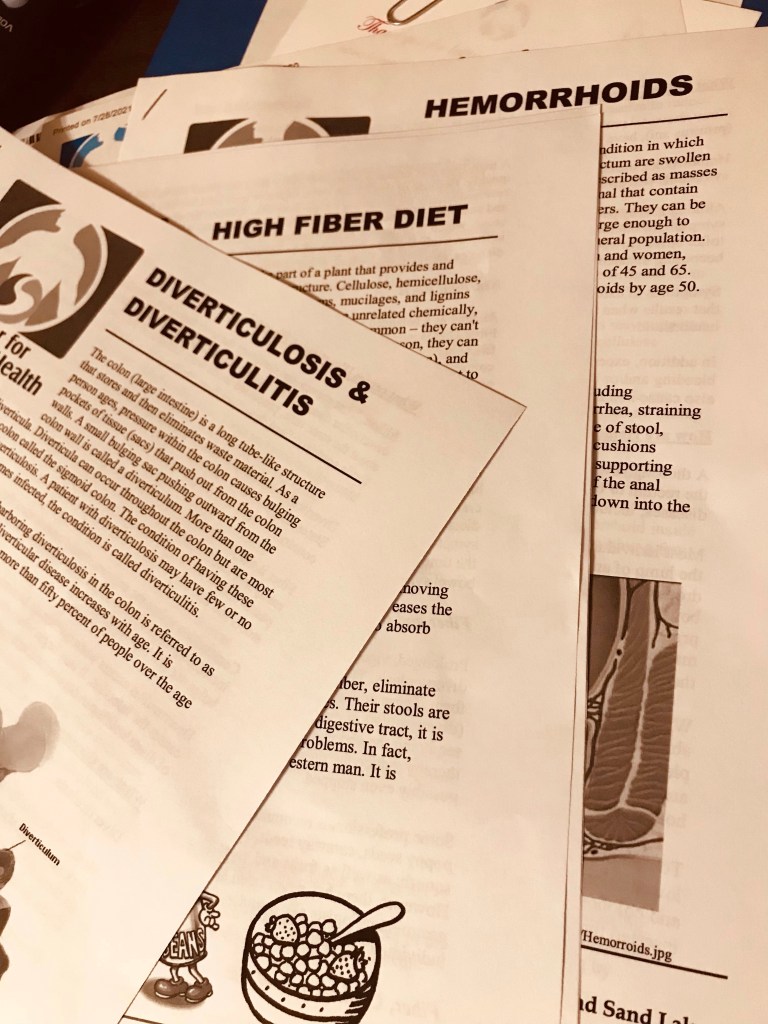 Not sure if making a gastroenterologist appointment is going to do any good because I’m not sure what they can do in the office—schedule an early colonoscopy? Then I’ll have blow fifty bucks on that nasty CLENPIQ to drink the day before. Omg, that stuff is nasty and not completely covered by my insurance. Going to the ER is even more expensive. I guess I’ll have to watch for fevers and chills. I did have chills last night, but they were not bad.