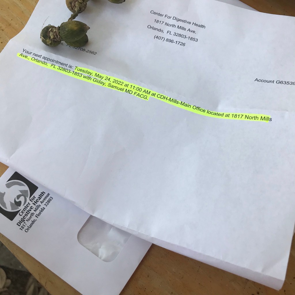 I got my reminder for my gastroenterologist appointment—for MAY. This is what I got when I called them on Friday. I’m so lucky this isn’t an ER case of diverticulitis.
