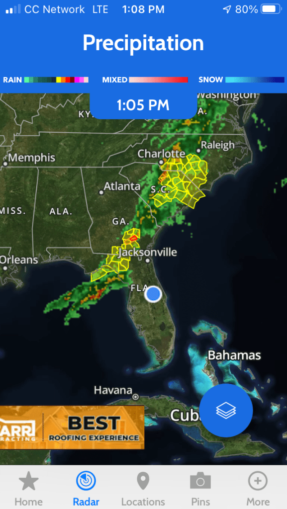 Those of you in the US may be aware of the nasty band of thunderstorms that are moving in a slant across the Southeastern states and up into South Jersey, New York, and I think further up the coast.