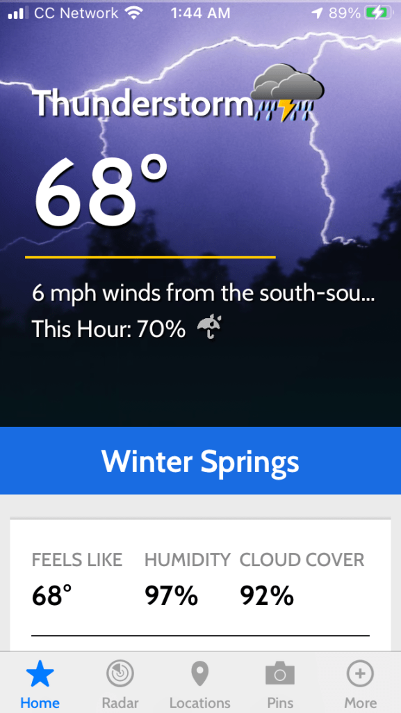 Meteorology is constantly changing. It kind of has that in common with psychology. Sometimes predictions are a crap shoot. Funny, I never thought of it before, but late in life I realized I could have loved being a meteorologist. It might be that bit of unpredictability that draws me in. That explains my love life. Ha! I digress. The storm produced a lot of lightning. One strike totally lit up my room. I loved the cracks and booms.
