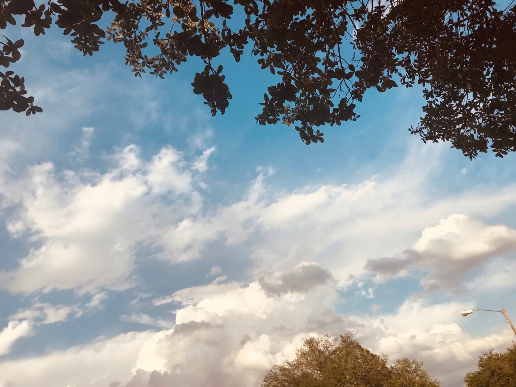 I wanted to post something, but I have a lot of ideas buzzing in my head, and I’m unsure of the writing direction I want to take. So, I decided to post these shots of Florida skies.