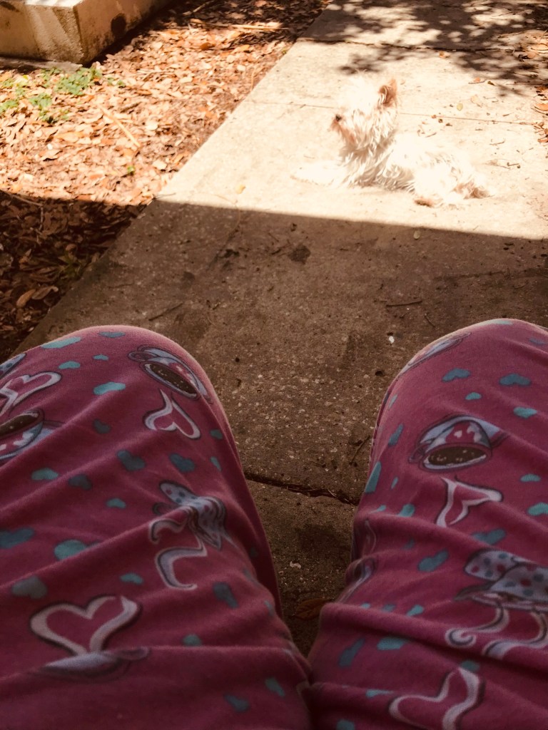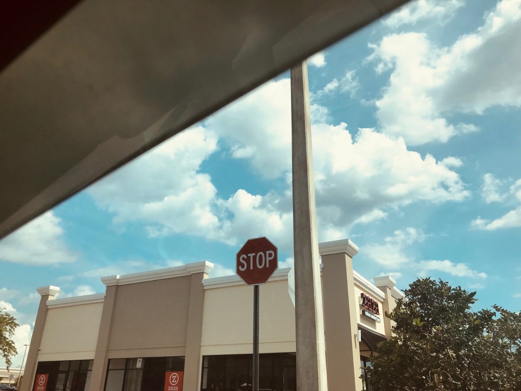 Sun over my front yard on Saturday.Me watching Bo sunning himself on Saturday.We went to IHOP in Oviedo.As we were leaving IHOP a VW parked next to us. I miss my VW!!! Sky over the Arafaya Woods shopping center, where IHOP is. There’s a Publix there too.We went to Publix so I could get a salad to eat with my left over omelette later for dinner. Well, that kind of mushroomed.