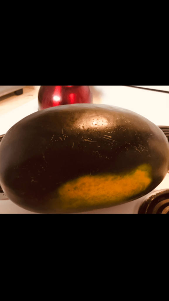 Yum. It’s a watermelon. This was grown in Florida—Lake Wales, I think. I’ve been wanting one since I first met one last Spring when I was still new to my job at Sprout’s Farmer’s Market.