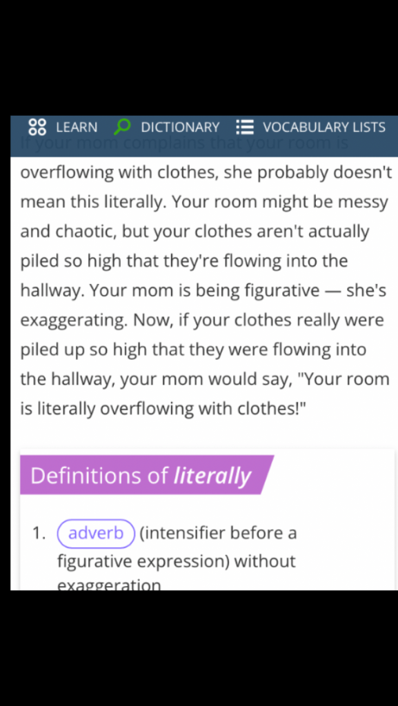 It’s especially annoying when you literally hear someone use, “literally,” literally three times in the same sentence. Drives me nuts, and that’s a very short drive, not literally.
