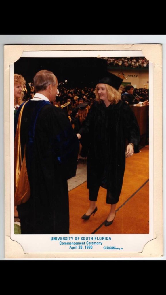 During that 11 year journey my alcoholic mother drank herself into a brain stem infarction, which put her into a coma, and certain death because the brain stem controls all the involuntary functions, such as breathing. The details are hazy, but I believe the reason she was kept alive for nearly a month on a respirator was due to some state law that mandated against bodily control by the family. Florida was redder than it is now, so it makes sense that state government would have such a ridiculous law. During this painful time, my education was put on hold, and my boyfriend during that time chose to be the biggest scumbag I’d ever dated by having a fling with a mutual co-worker, who also happened to be a mass communications major at USF.