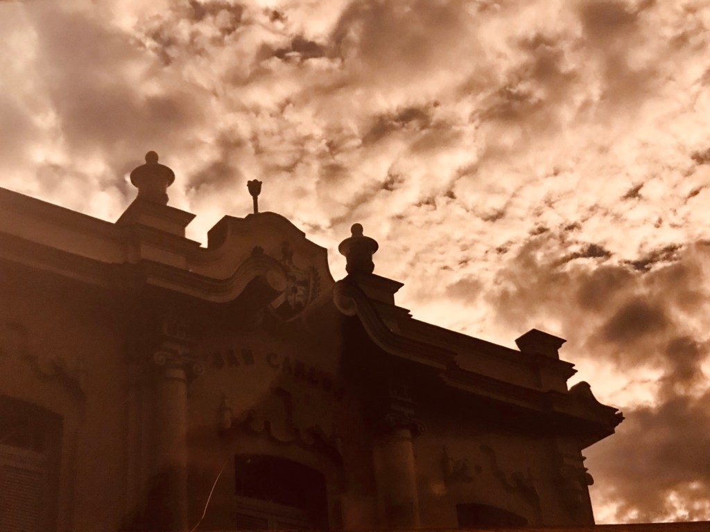 Nope, not what I asked for. I was trying for my photo of a Nasty Woman t-shirt that was for sale outside the venue at UCF, in Orlando, where Obama was speaking just days before the 2016 election. Instead I got this photo of the parking lot and sky over the Winter Park Sprouts.Nope. Was going for a shot I took of Mt. Hood shot through the gigantic windows in Timberline Lodge, in Oregon. This image is of the statue in our front yard in Winter Springs.Nope. Not the image I asked for. I was trying to insert a photo of the Jack o’lantern I carvedin 2021, basically using one arm because of my freshly torn rotator cuff and broken shoulder sustained in an auto accident,Ding, ding, ding, and we have a winner. This is the photo I wanted. Sky over a building in Key West, Florida, in June 2005.Fail. I was trying to insert a photo of my late cat, Floyd. This is a meme I got from Facebook.JetPack bombs again. I wanted a photo of Covid signs taped to cooler doors in a Publix near my home in 2020. This is a photo of pine trees at an interstate rest stop in Georgia, in June 1992.Whooohoo. This is what I picked. Sky over Winter Springs, sometime in 2021.Nope. This is a storm I drove in on Aloma Avenue in Winter Park. It might even be of Hurricane Ian, or Nicole, in 2022. I actually forget what I was aiming for, but this ain’t it