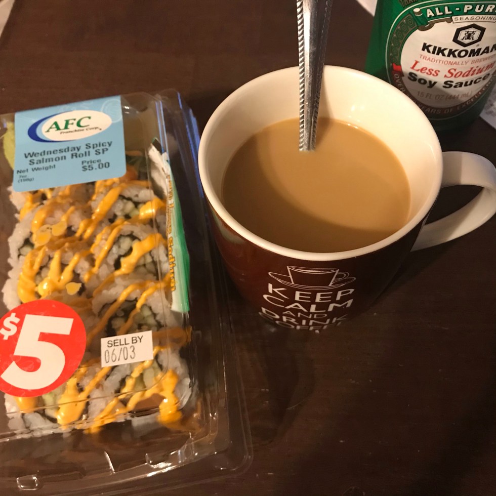 Sushi with coffee and 70’s television